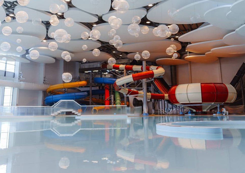 Для вас 13 водных аттракционов разной степени экстремальности, а также бассейны с теплой кристально - чистой водой. Взрослая зона включает 2 бассейна, 7 водных горок (труба, табаган, камикадзе, волна, космическая воронка, бабочка, сферы). В детской зоне расположены 6 водных горок (радуга, осьминог, кролик, дикая, детский комплекс), а также игровая зона на суше и водные пушки. На первом этаже в термальной зоне для вас работают бани и сауны: хаммам, соляная, финская, русская, лакониум, где вы сможете расслабиться и поправить свое здоровье, а после отдохнуть в джакузи под открытым небом. Температура воды здесь 38 градусов, что сделает купание даже в зимний период максимально - комфортным. На втором этаже можно перекусить в кафе с панорамными окнами.
